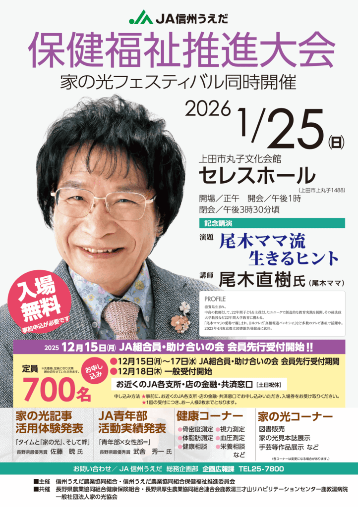 JA信州うえだ「保健福祉推進大会」「家の光フェスティバル」(同時開催)のお知らせ